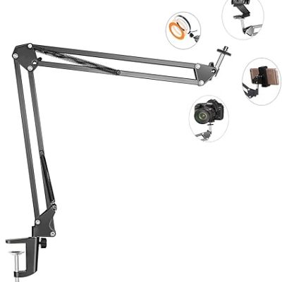 Overhead Tripod Mount for Camera Webcam Ring Light, Flexible Over Head Arm for iPhone with Phone Holder and Ball Head, Table Stand Accessory for Phone Video Recording Live Stream