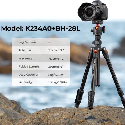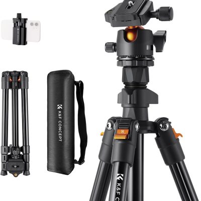 K&F Concept 64 inch/163cm Camera Tripod,Lightweight Travel Outdoor DSLR Tripods with 360 Degree Ball Head Load Capacity 8kg/17.6lbs,Cellphone Clip for Smartphone Live Streaming Vlog K234A0+BH-28L